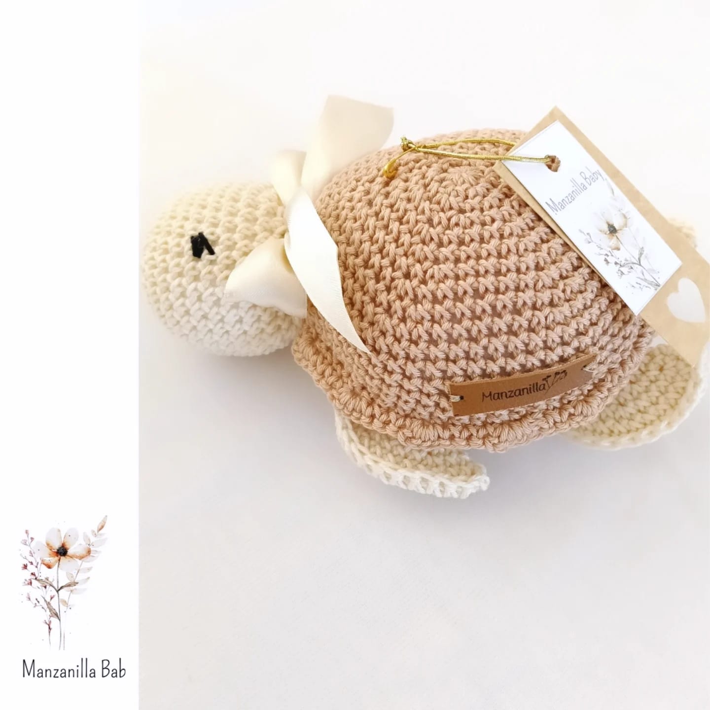 Tortuga tejida a mano en hilo de algodón y bordada a mano